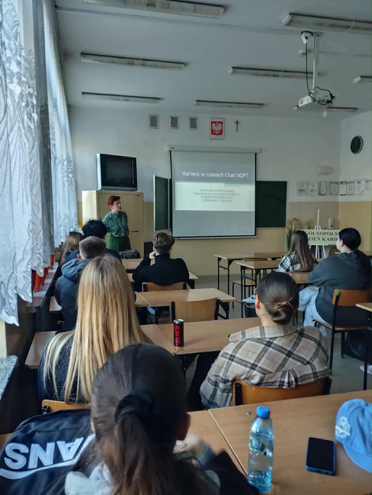Dnia 21 października 2025 uczestniczyliśmy w Tygodniu Kariery organizowanym przez Zespół Szkół Ponadpodstawowych nr 3 im. Stanisława Staszica w Siedlcach. Wykład pt.: „Kariera w czasach chat’a GPT” poprowadziła mgr Maryla Karczewska-Czapska.
